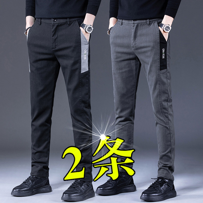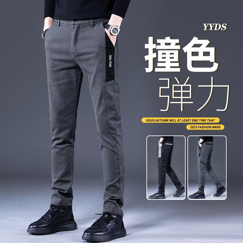韩版拼接休闲裤子男士2025新款修身小脚男裤弹力牛仔长裤男春秋款