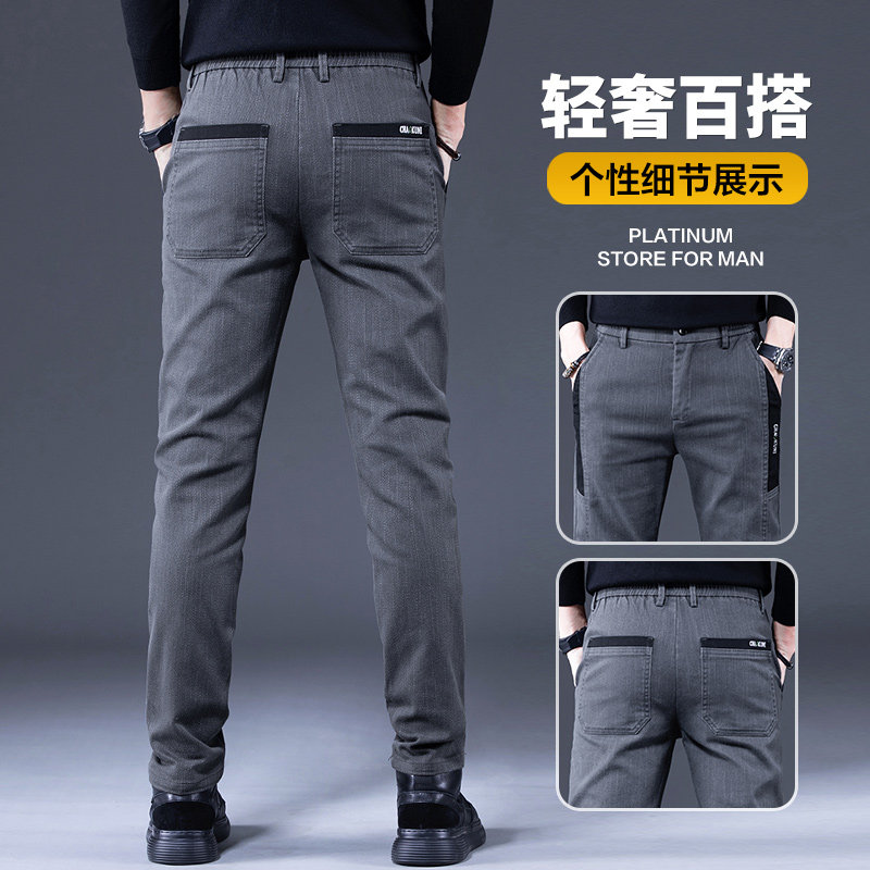 罗蒙加绒加厚男士休闲裤商务休闲秋冬季新款弹力直筒西裤秋冬款