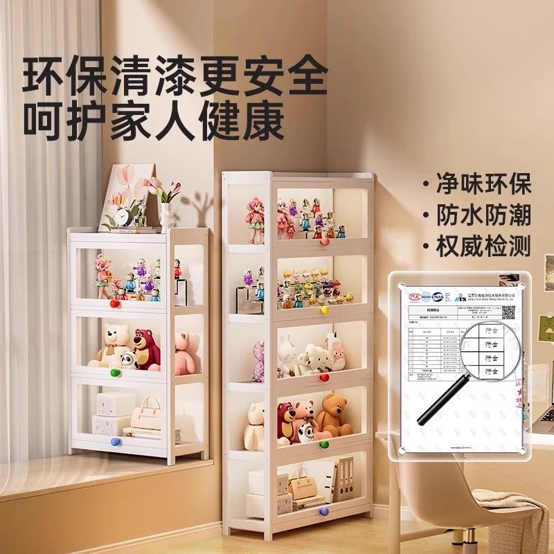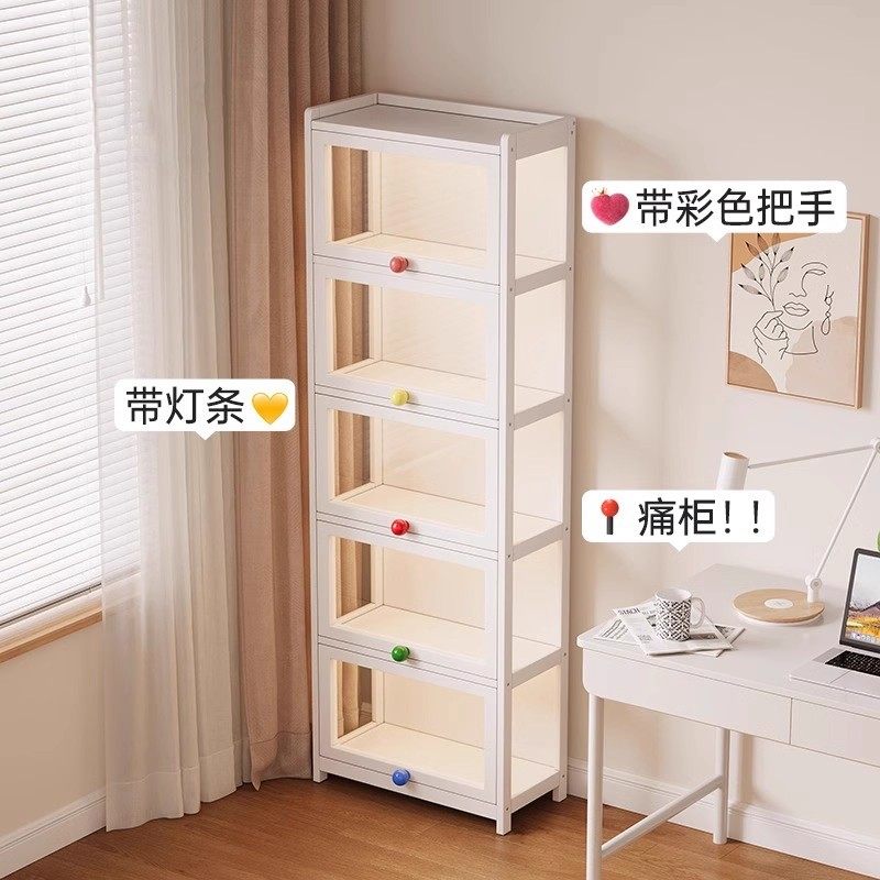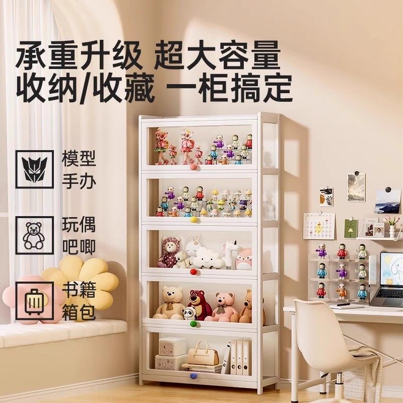 书柜翻盖门防尘书架落地置物架一体靠墙儿童玩具手办收纳柜子玩偶