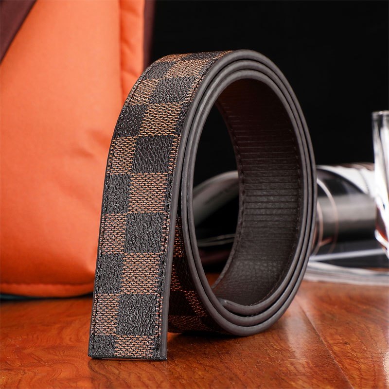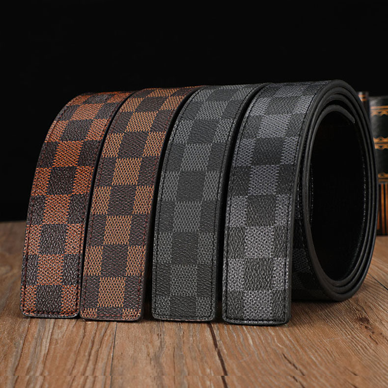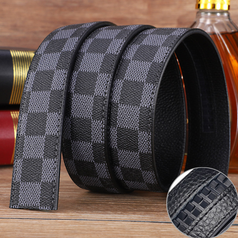 爱马男仕无头H皮带男真皮格子平滑扣不带头h腰带卡槽休闲时尚无扣