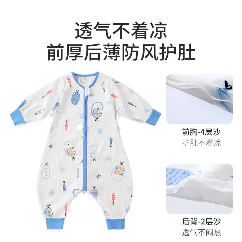 欧孕小清心睡袋婴儿四季通用竹棉纱布宝宝防踢被儿童分腿春秋冬款