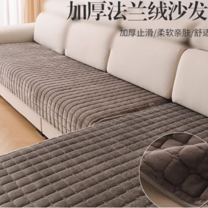 跨境现代法兰绒沙发垫冬季防滑沙发垫毛绒座垫套罩轻奢秋冬款