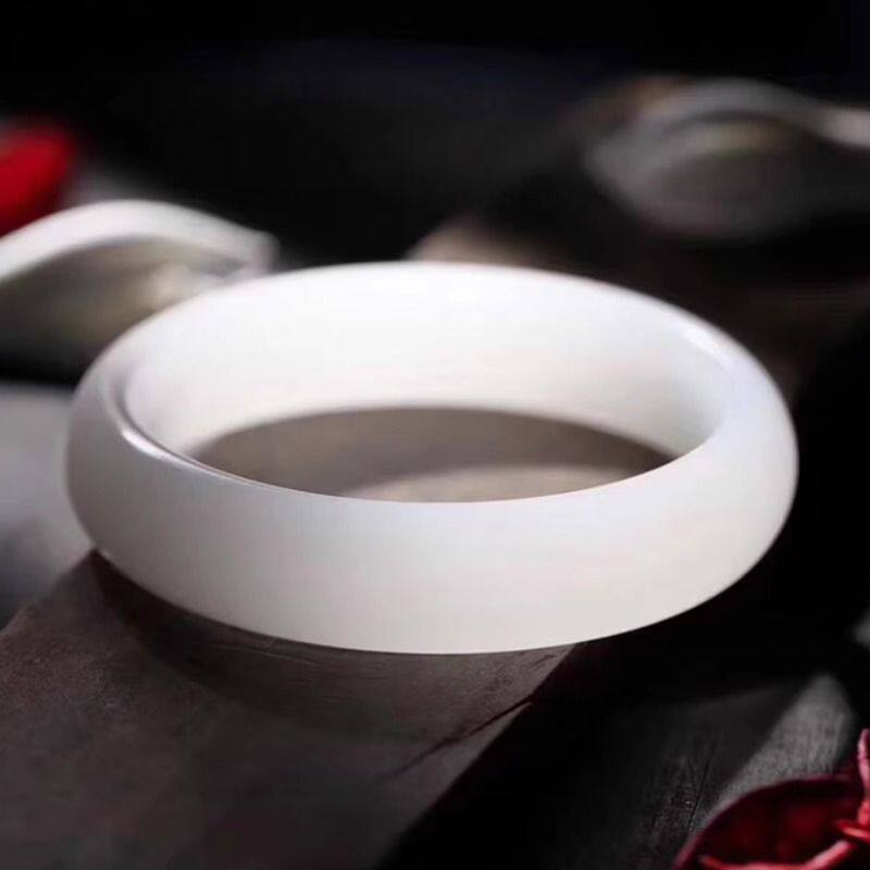 新疆白玉手镯金丝玉镯子女款真玉石镯送妈妈女友礼物石英岩质玉镯