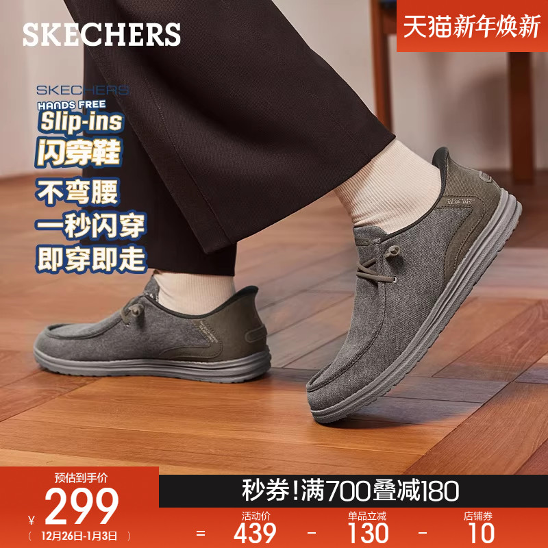 Skechers斯凯奇闪穿鞋男一脚蹬休闲板鞋2025秋冬新款帆布乐福鞋