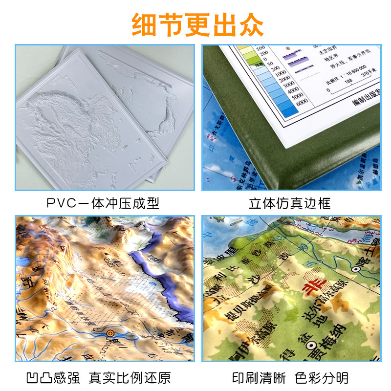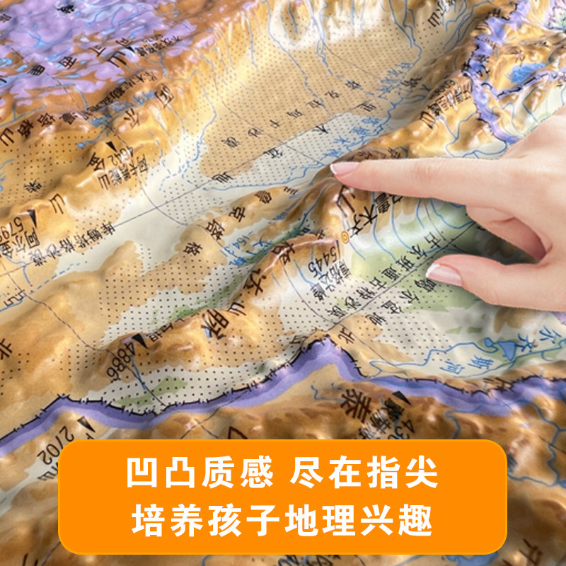 2025年地图世界和中国地图 3d立体凹凸地形图 约58*43cm浮雕地图挂图 初高中学生专用地理教学家用墙贴 抖音同款北斗官方