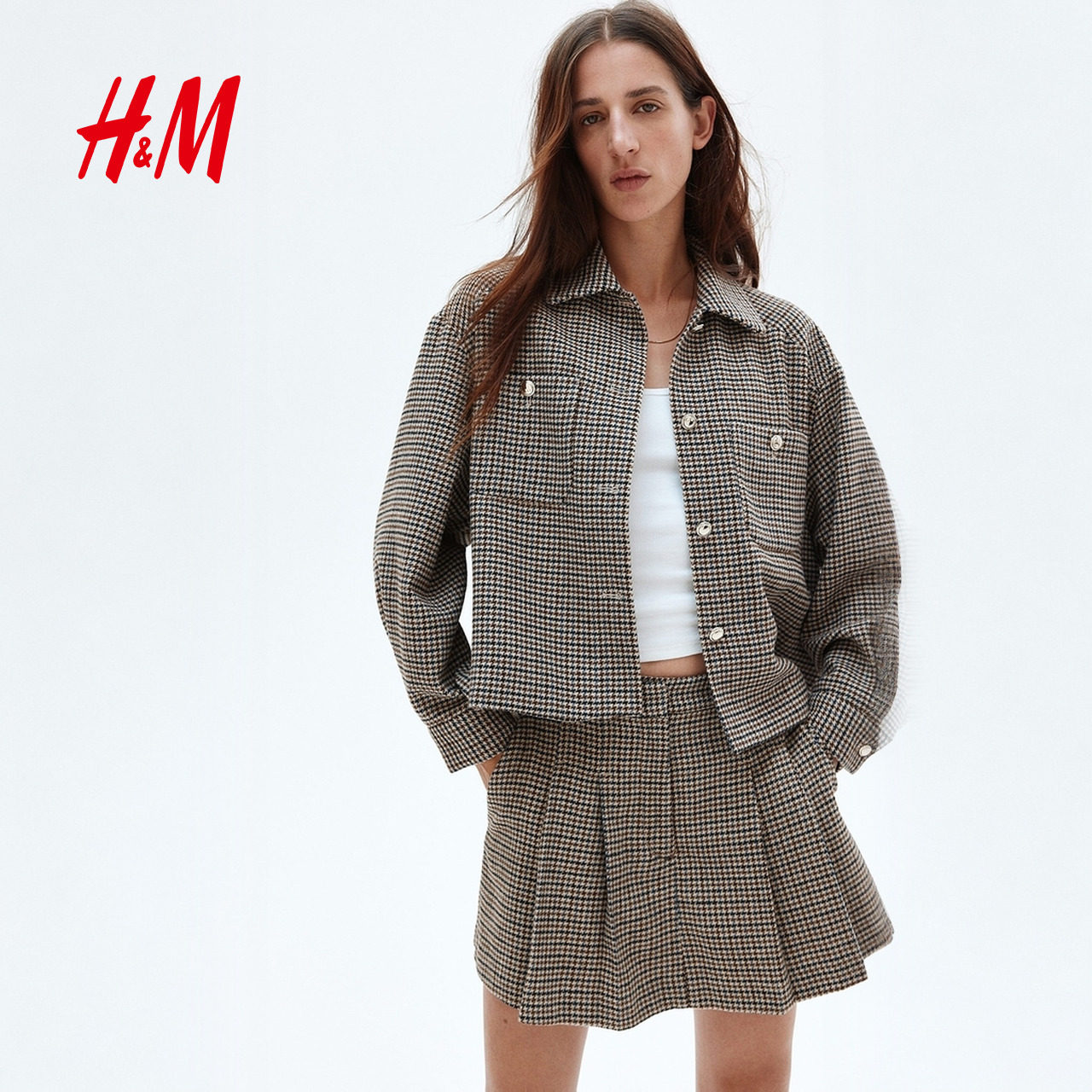 HM女装裤子春季通勤气质时尚休闲裤褶裥短裙裤1292329