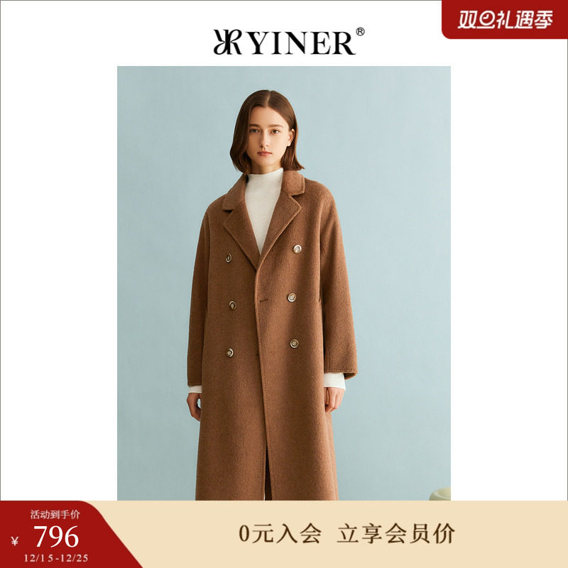 【绵羊毛+牦牛绒】YINER音儿专选女装冬双面毛呢大衣外套