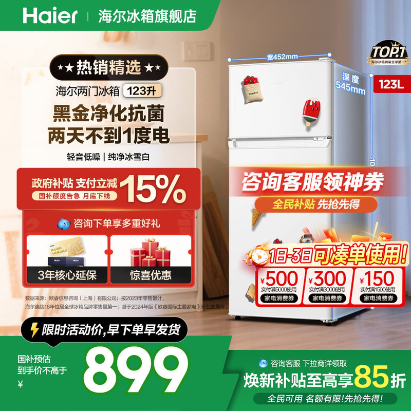 【国补告急】海尔冰箱123L上下两门出租宿舍节能家用小型官方正品