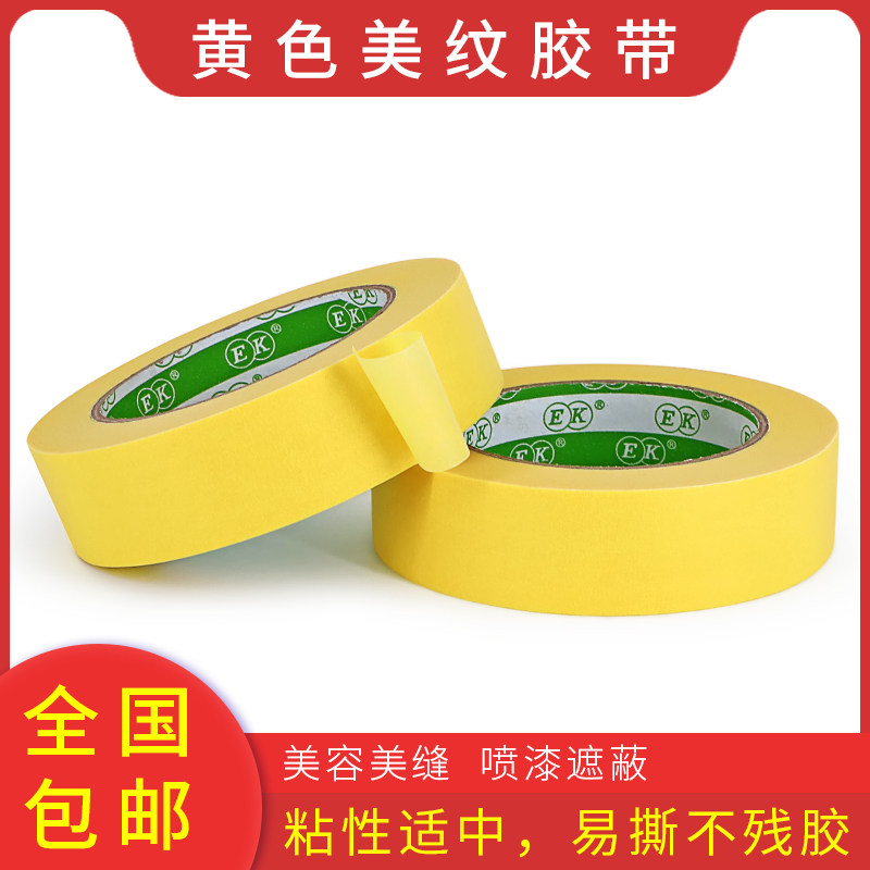 SZFY黄色美纹纸胶带批发美纹美缝胶带和纸分色纸美文纸黄色耐高温纸胶带汽车喷漆胶美缝硅藻泥装修遮蔽胶带