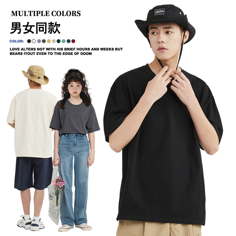 新疆棉400g重磅纯棉短袖t恤男女情侣半袖夏季白色圆领宽松打底衫