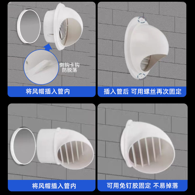 PVC110透气帽油烟机防风罩外墙风帽防雨防雨帽塑料排气孔盖水管