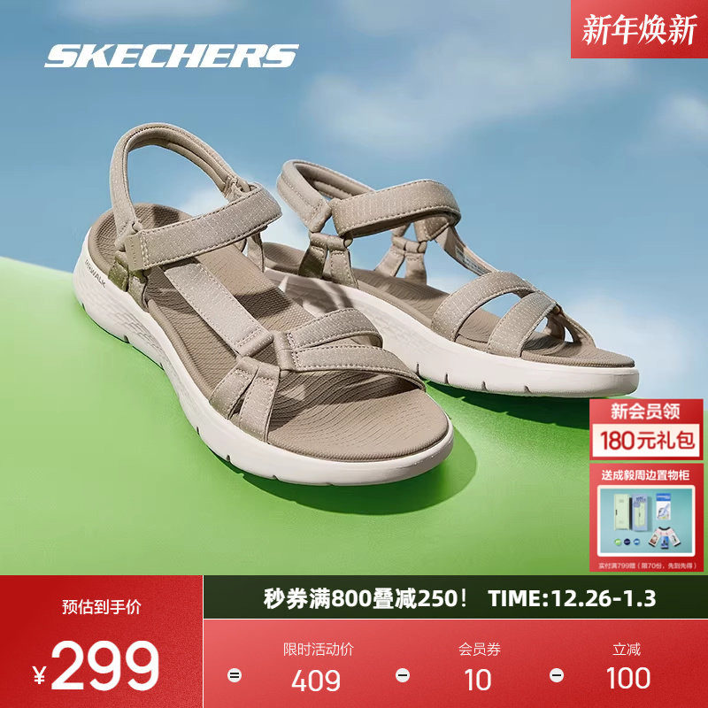 斯凯奇新款女鞋外穿凉鞋软弹舒适沙滩鞋魔术贴设计轻便休闲鞋子