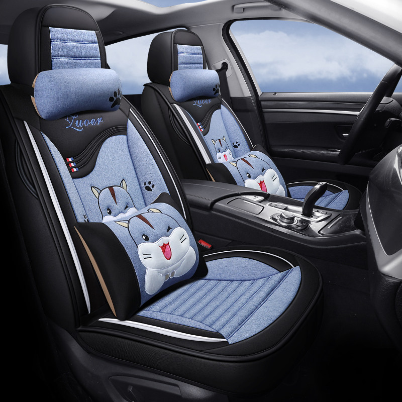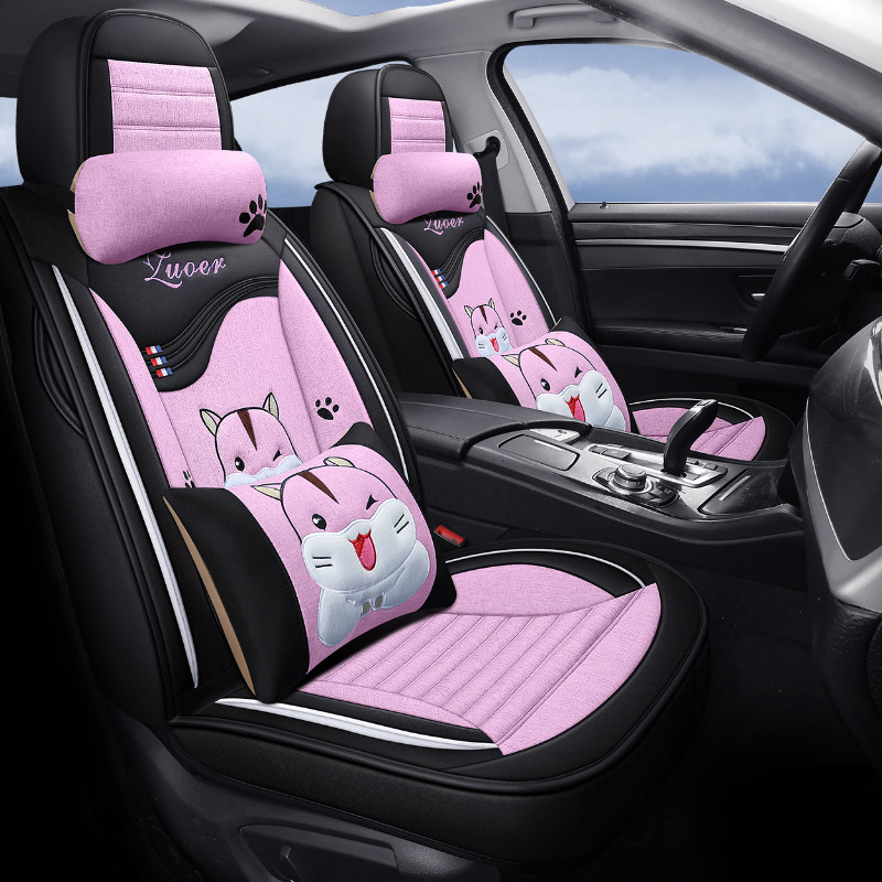 2025新款卡通汽车座套四季通用全包汽车座垫透气垫亚麻座椅套坐垫