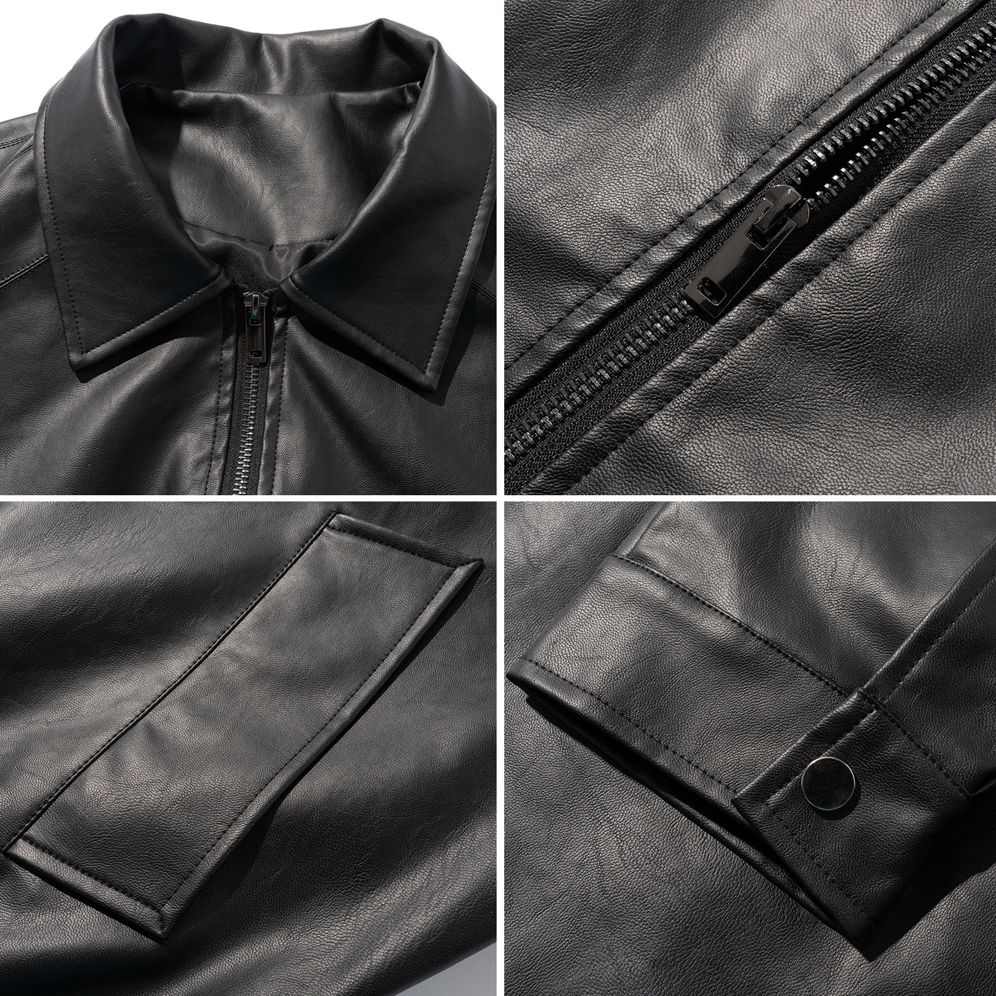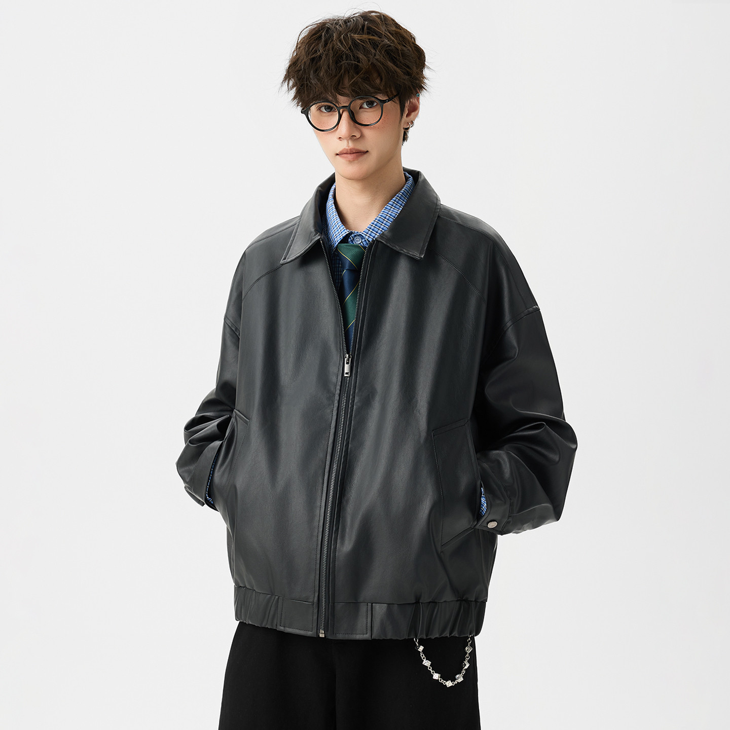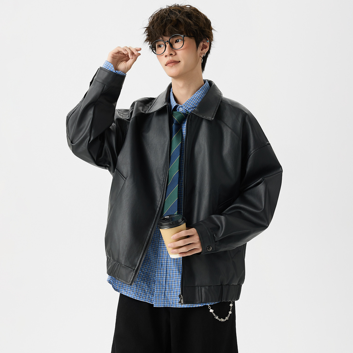 男士皮夹克外套男翻领2025新款秋季美式短款上衣黑色机车皮衣男装