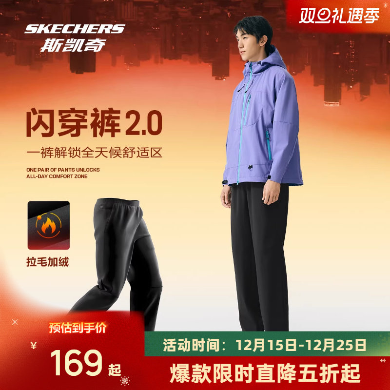 梁朝伟同款丨斯凯奇加绒闪穿裤长裤2025秋冬男女防水抗皱运动裤