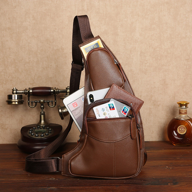 男士胸包休闲单肩背包胸前男士胸包真皮男包潮流多功能斜挎包