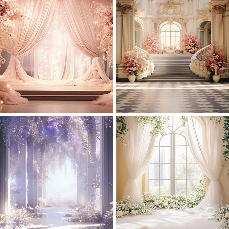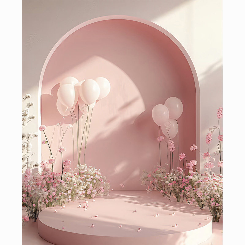 粉色节日直播拍情人节简约风气球高级感网红拍照区可移动氛围感新款直播背景布3d立体壁纸画直播间场景布置