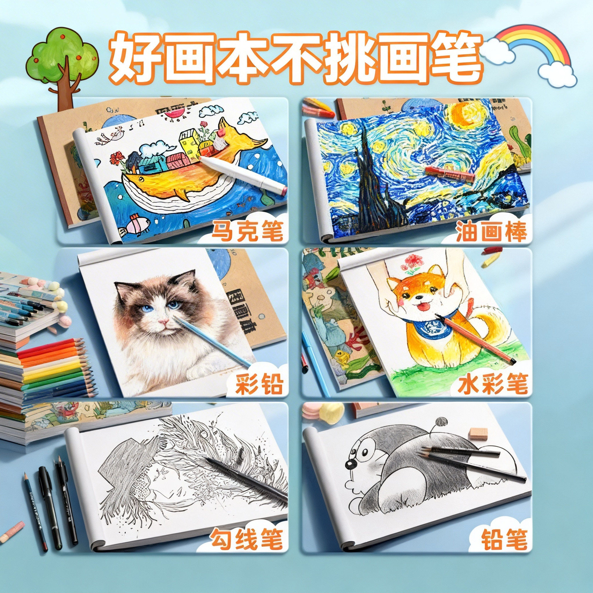 加厚牛皮图画本涂鸦本空白微黄纸A4超厚儿童小学生本色画本素描本