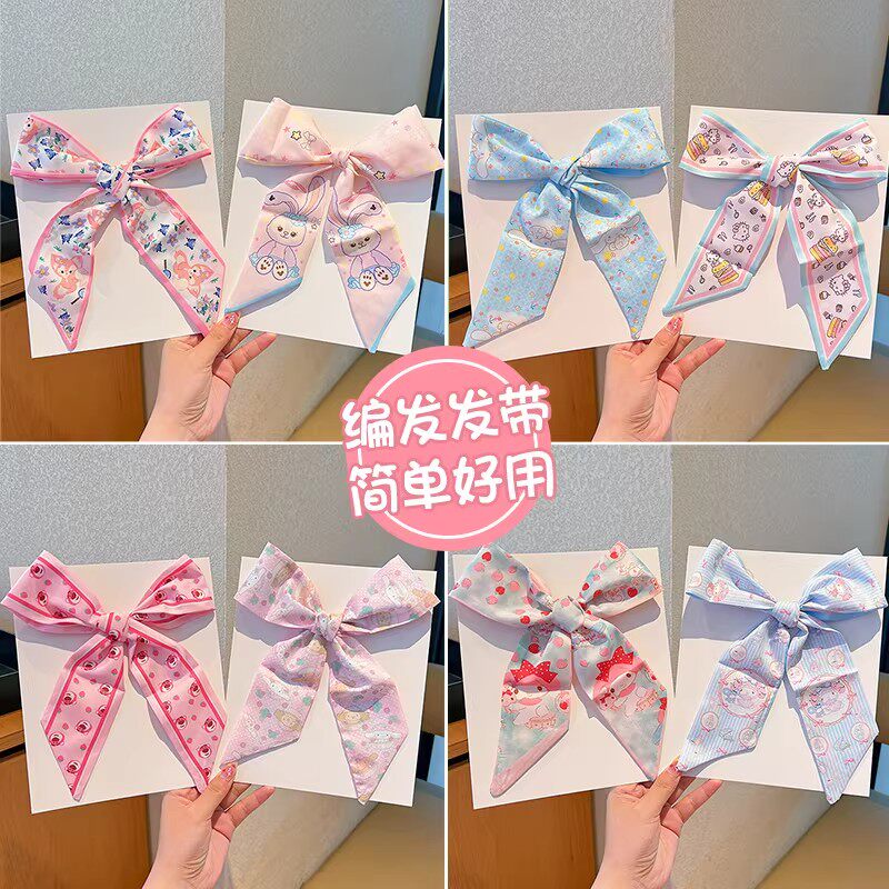 儿童丝巾发带女孩编发头饰甜美气质蝴蝶结飘带网红布艺不伤发发饰