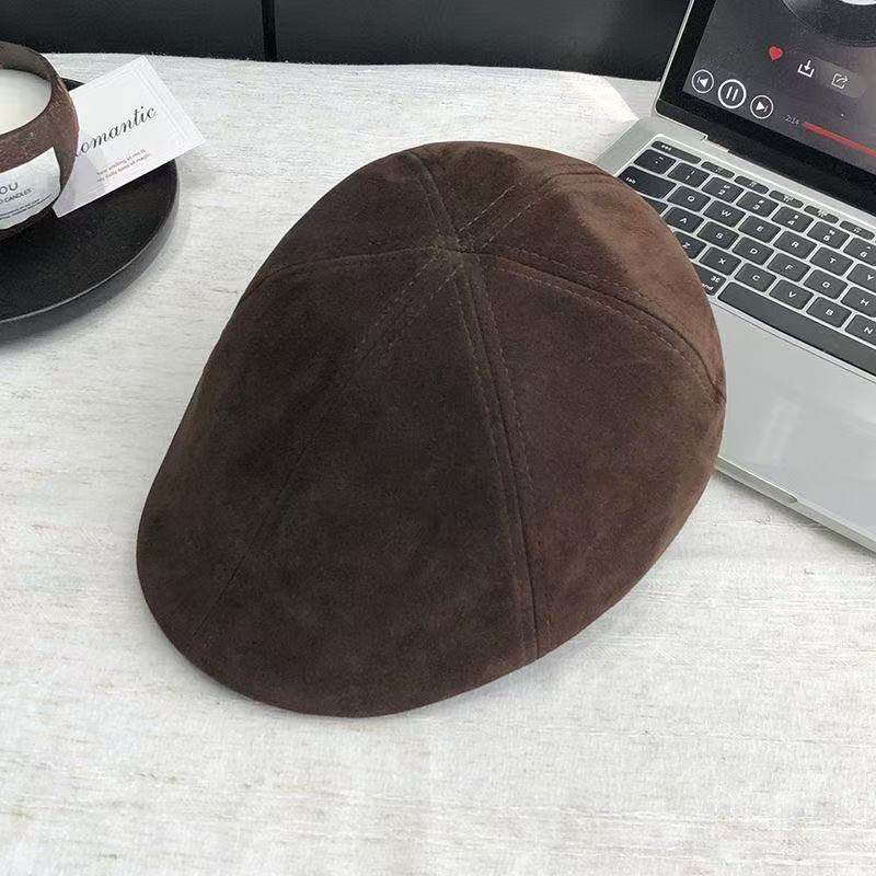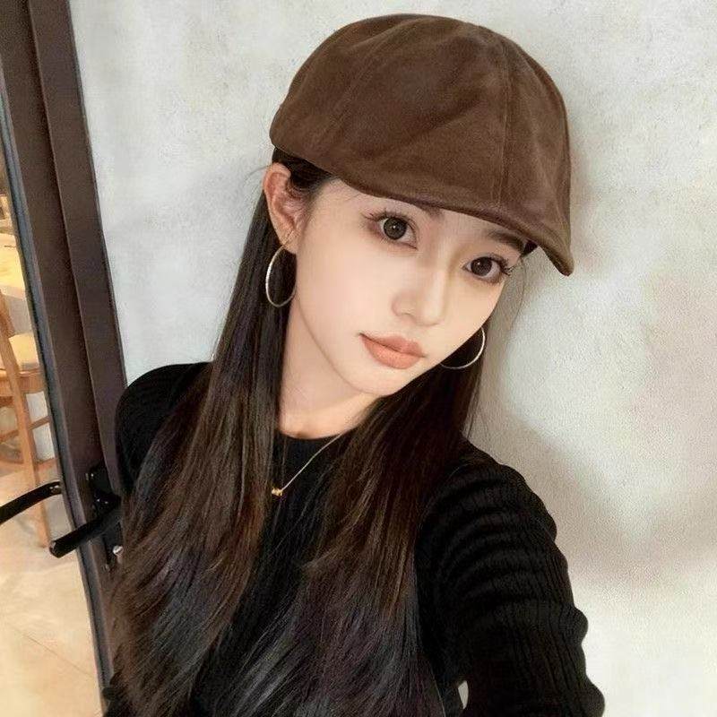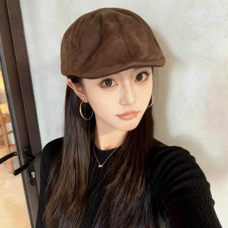 2025新款麂皮绒贝雷帽女秋冬显脸小前进帽大头围鸭舌帽子英伦风