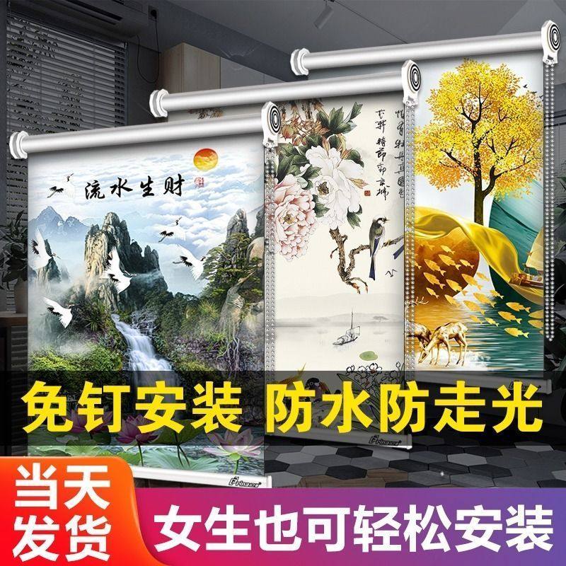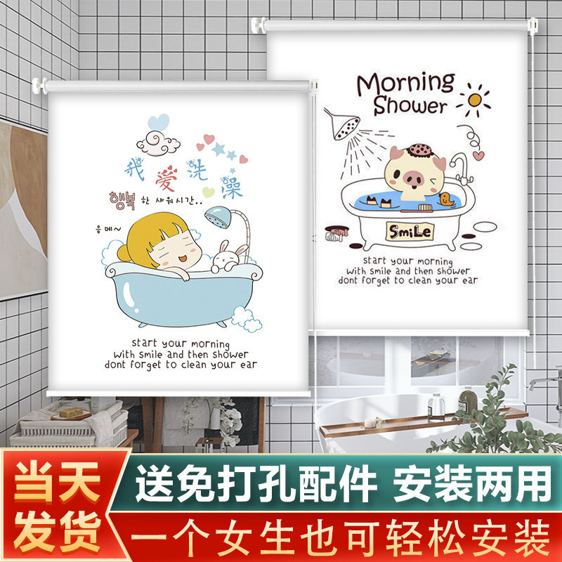 窗帘卷拉式卫生间卷帘防走光免打孔窗户遮挡帘浴室厕所拉帘遮光