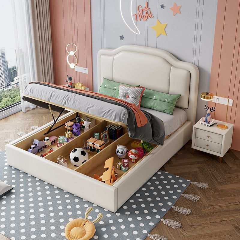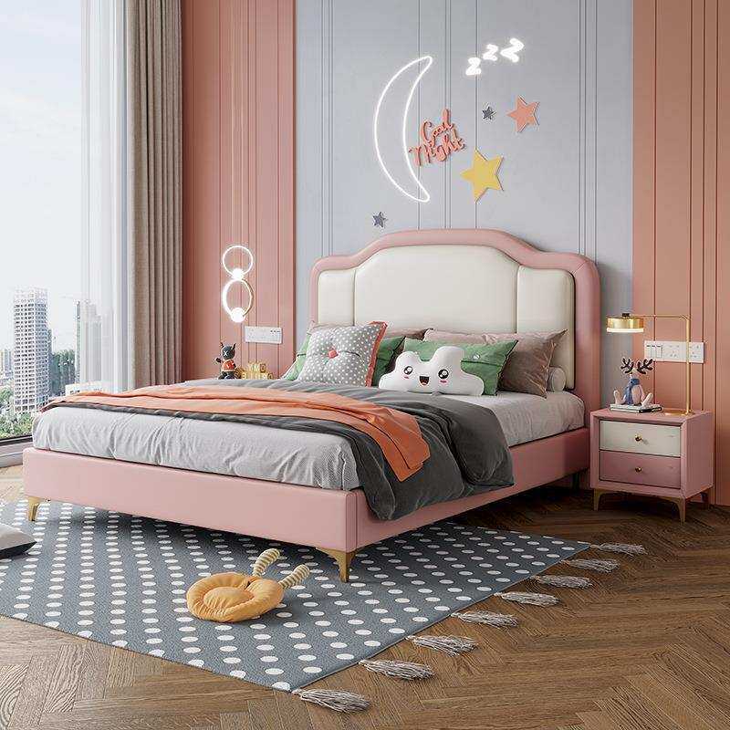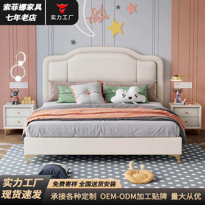 奶油风公主床软靠皮艺床现代简约儿童床单人床卧室女孩云朵皮床
