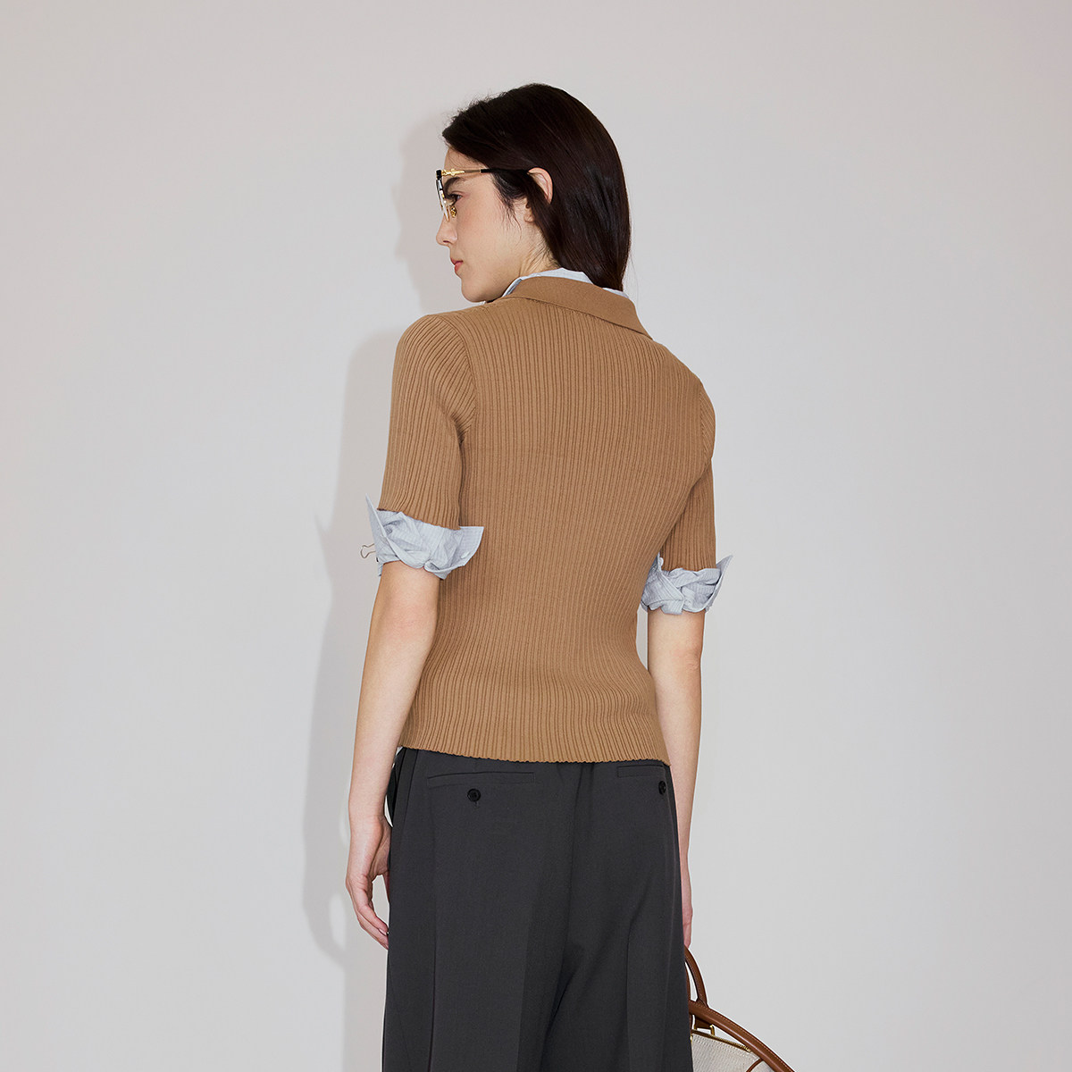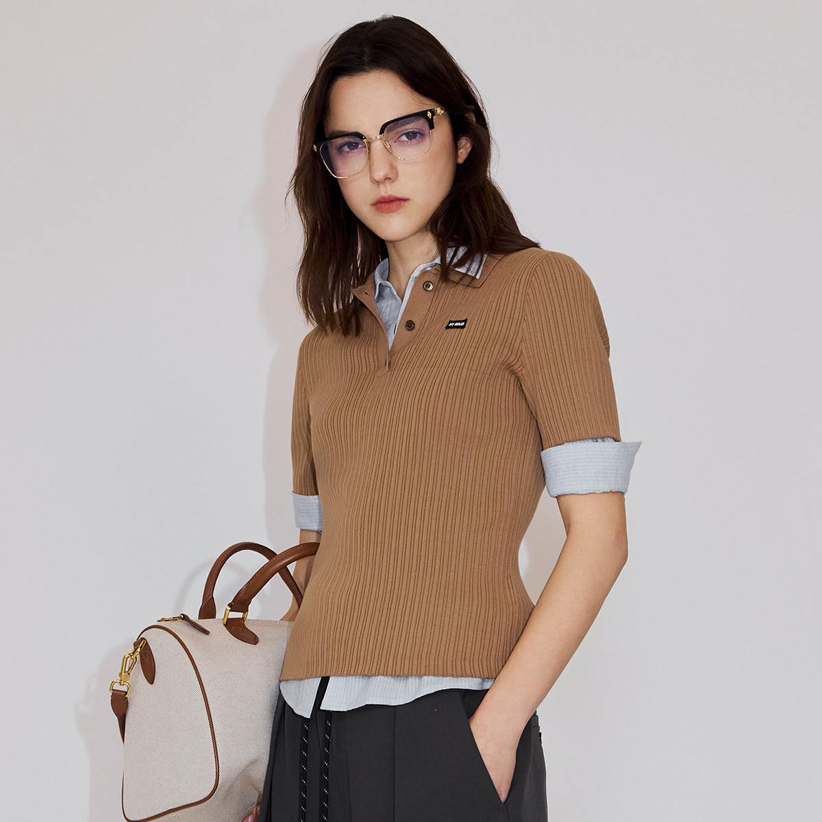 【新品】OCHIRLY欧时力 针织衫2026春夏新疆棉polo领坑条通勤短袖