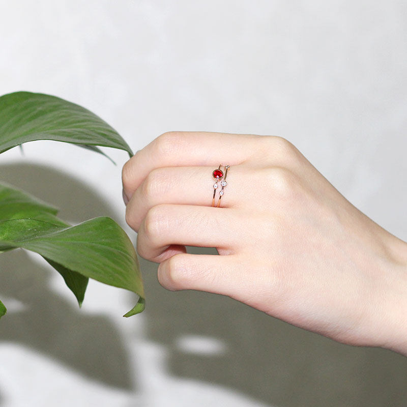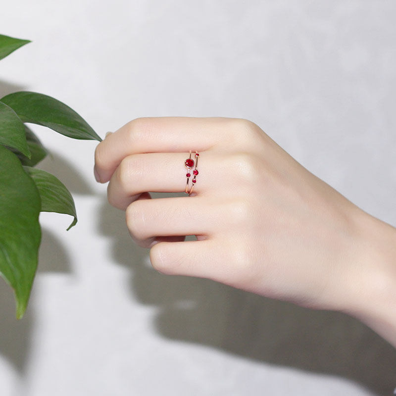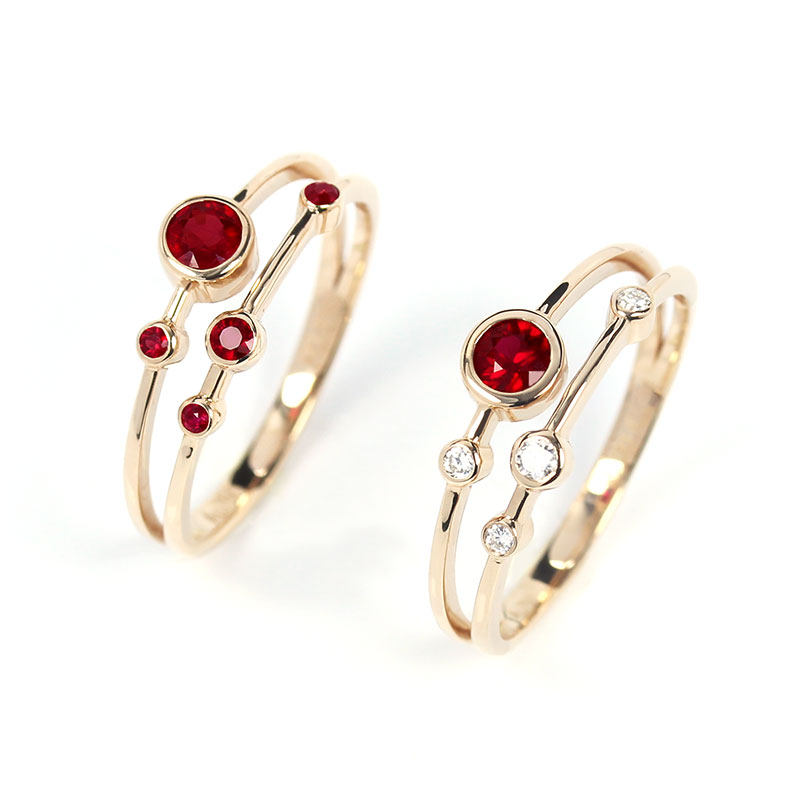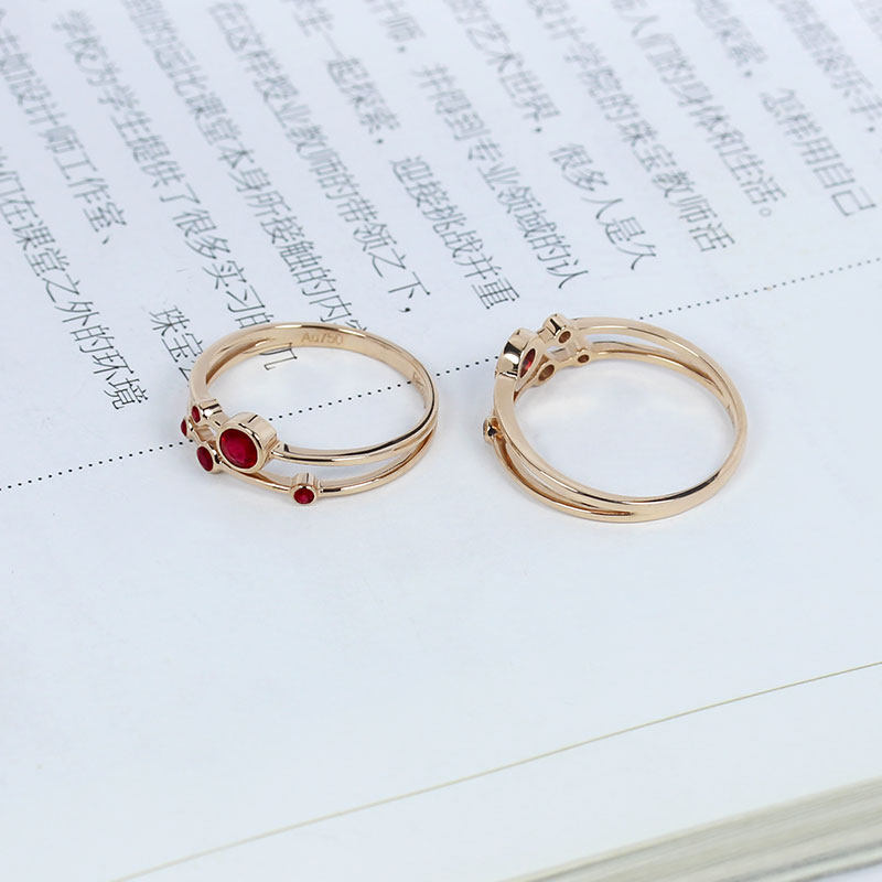 18K玫瑰金天然鸽血红宝石星球行星戒指 彩金包镶钻石双层分叉女款
