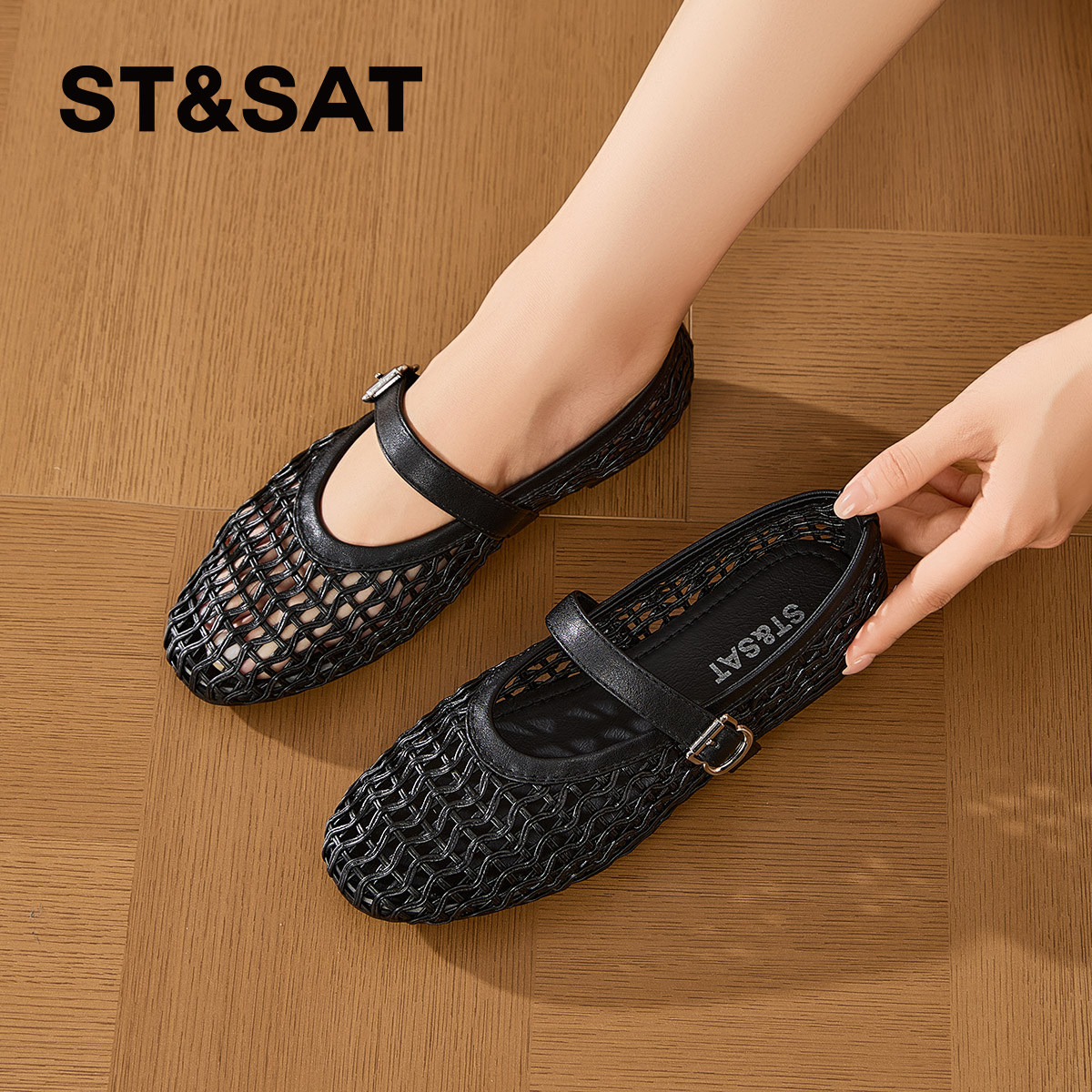 星期六玛丽珍鞋女款2026新款夏季平底镂空浅口单鞋轻便休闲凉鞋女