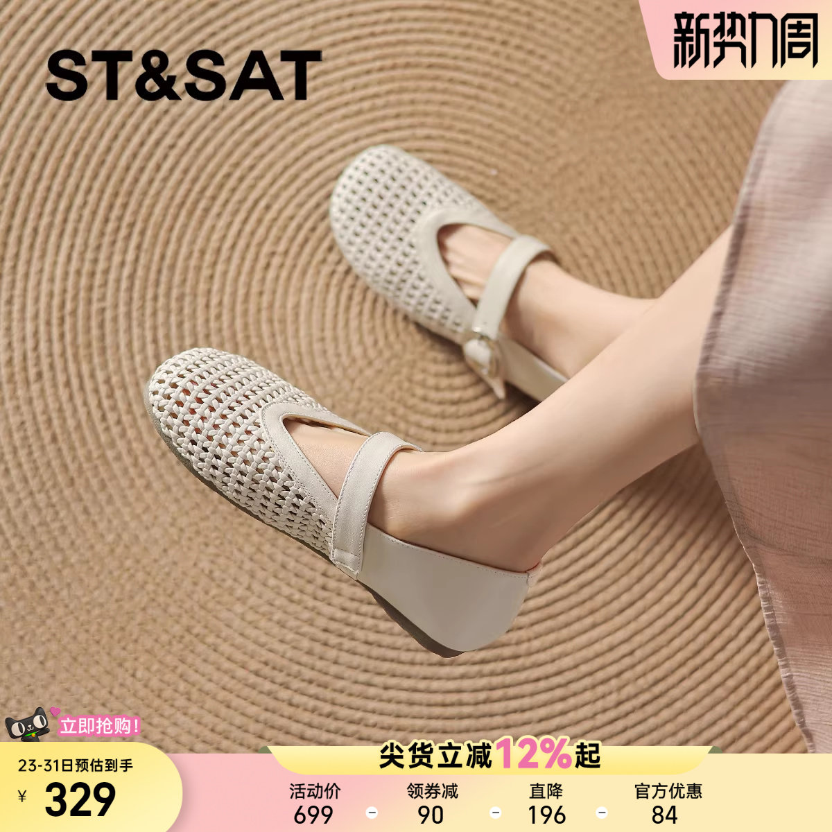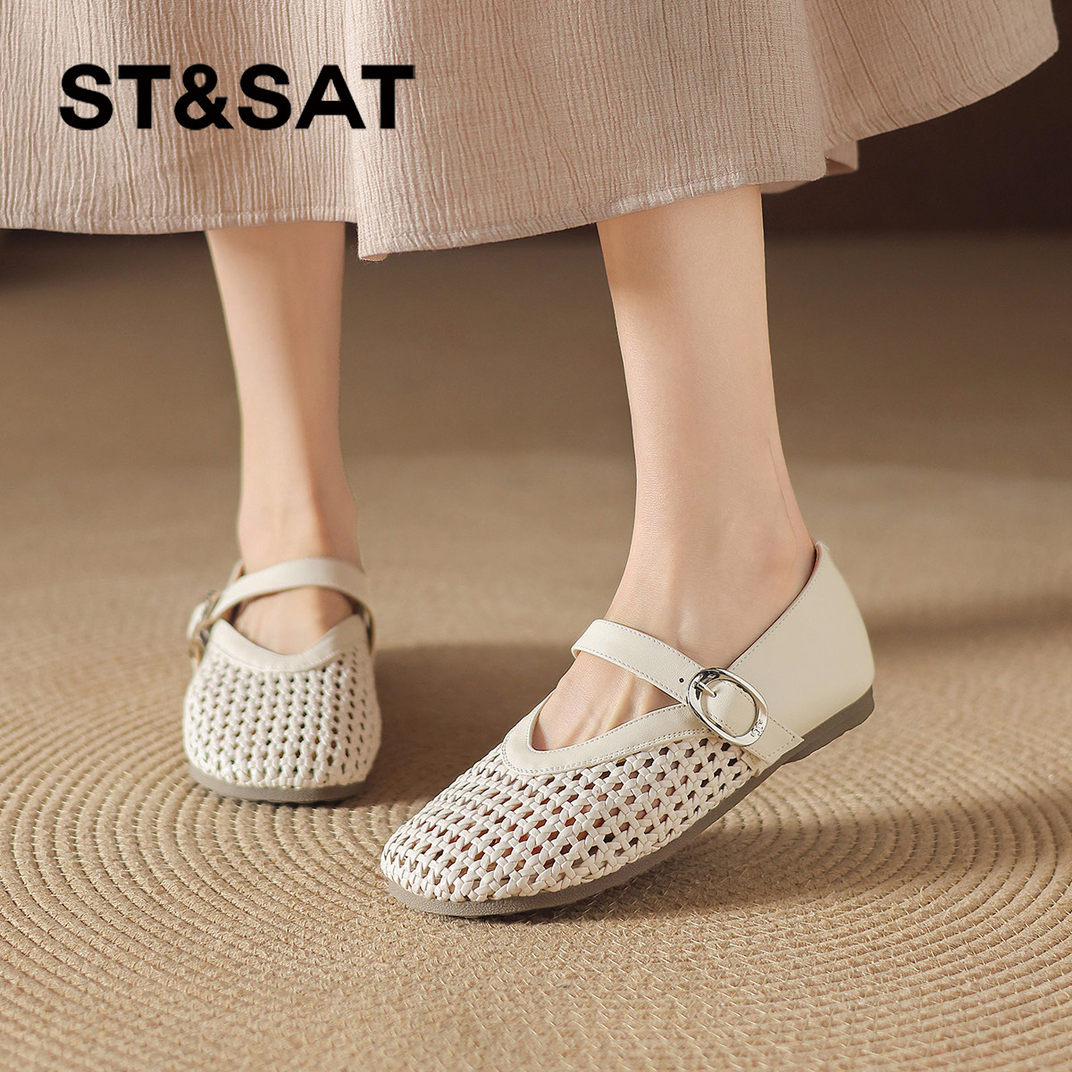 星期六平底单鞋女2026新款夏季透气玛丽珍女鞋渔网鞋编织镂空凉鞋