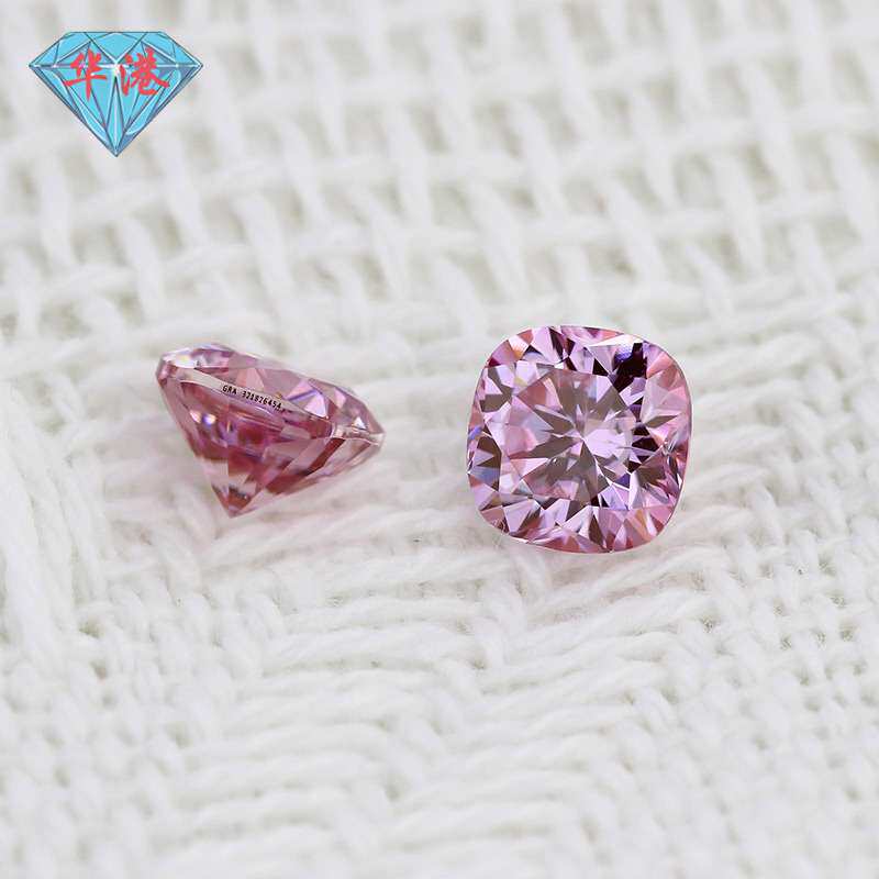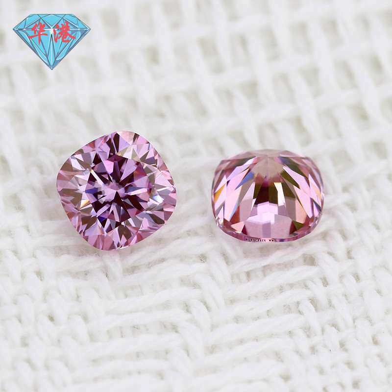 华港宝石 肥正方枕形粉红莫桑石裸石戒面 粉色莫桑钻裸钻 人工