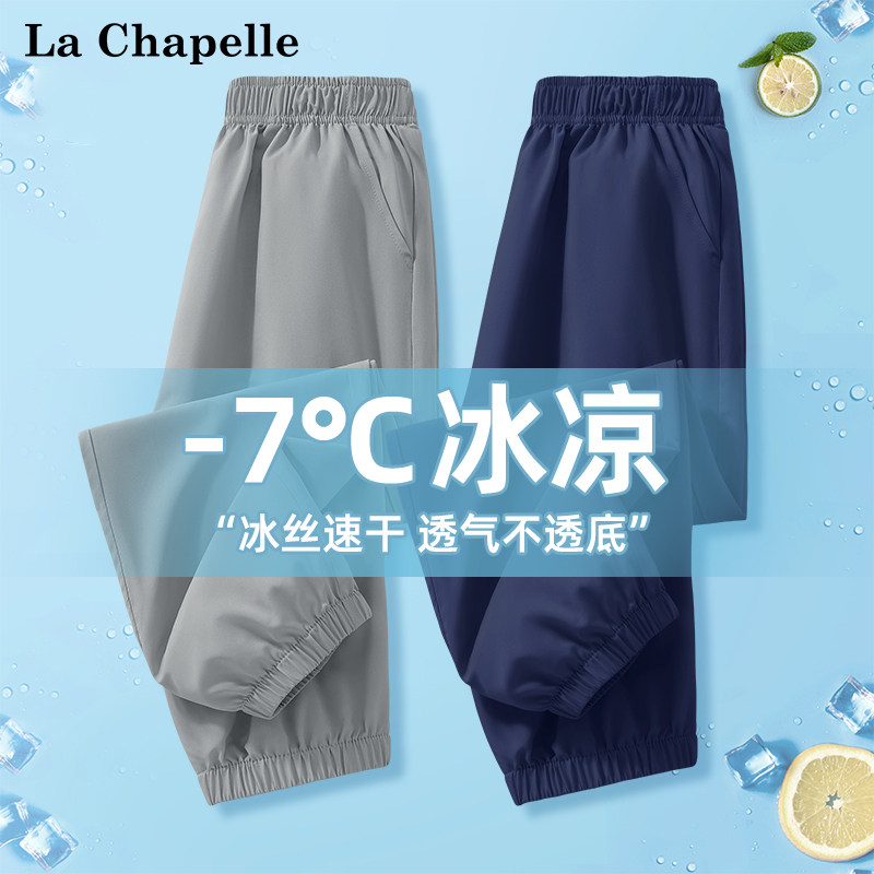 拉夏贝尔男童防蚊裤2025新款儿童冰丝速干长裤夏季运动裤透气裤子