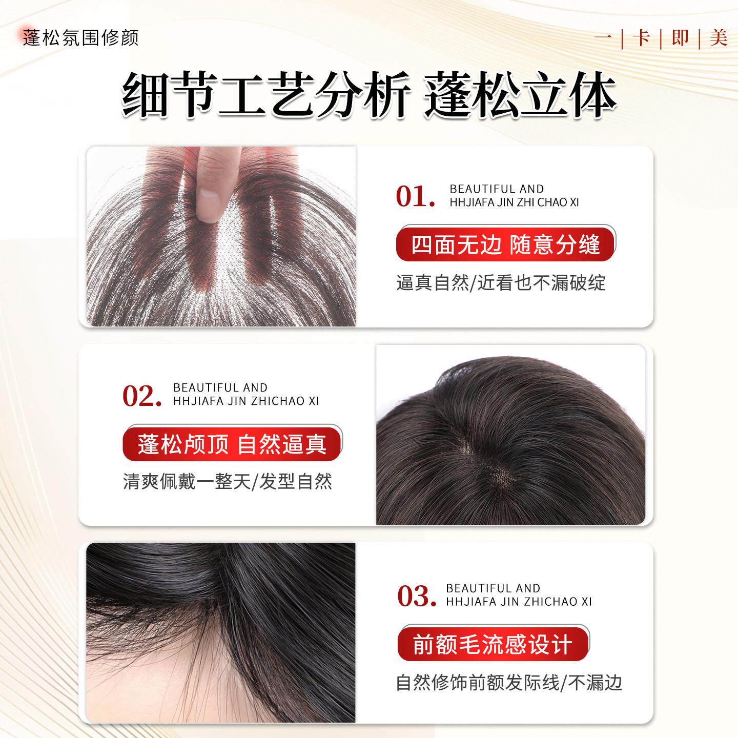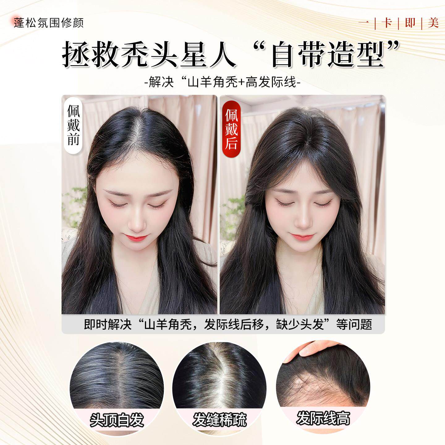 法式刘海假发女片头顶补发自然前额蓬松颅顶齐刘海补发片八字轻薄