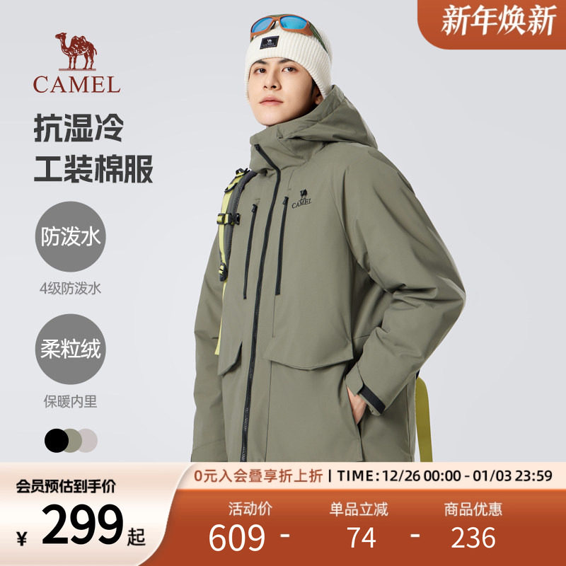 骆驼男装夹克棉服男冬季2025新款连帽加绒加厚防水工装棉衣外套男