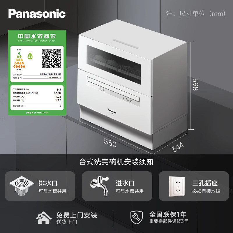 松下台式洗碗机母婴级除菌免安装家用台面5套智能全自动三代K1Y
