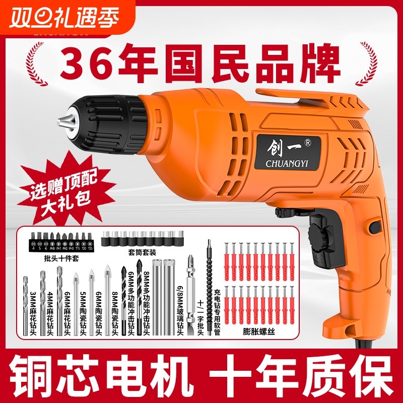 创一220V多功能家用手电钻电钻大功率手钻冲击钻电动螺丝刀手枪钻