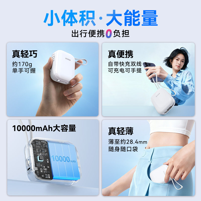 【国家3C认证充电宝可上飞机】W&P2026新款自带线超薄小巧便携20000毫安大容量国标识适用苹果17快充移动电源