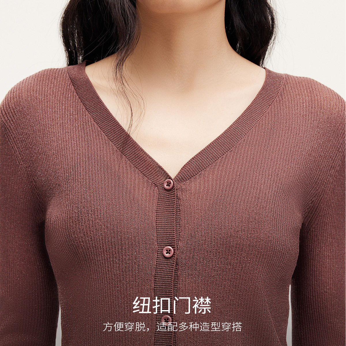 Vero Moda奥莱针织开衫女春夏新款光泽感V领纯修身百搭空调衫毛衣