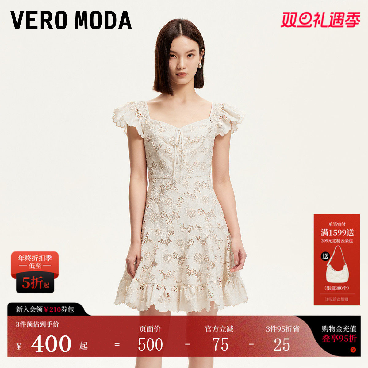 Vero Moda连衣裙2025夏季新款纯棉立体花边系带修身短裙32527A059