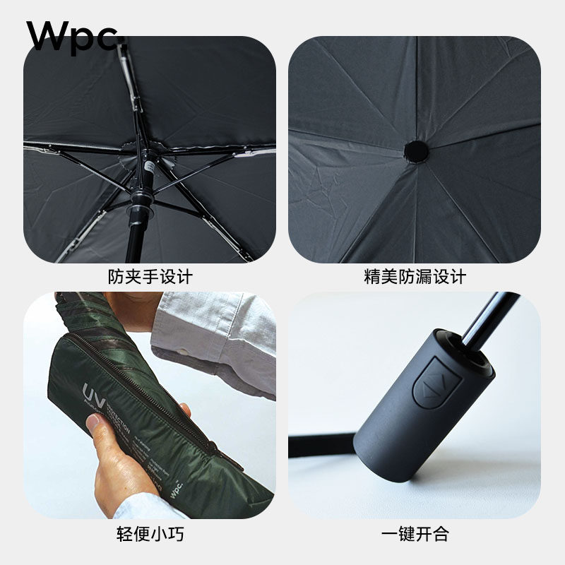 wpc防晒伞商务伞晴雨两用黑胶全自动折叠伞便携遮阳防紫外线