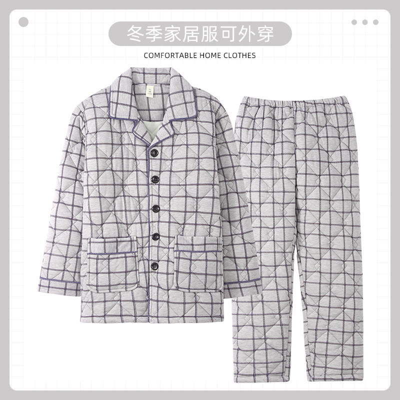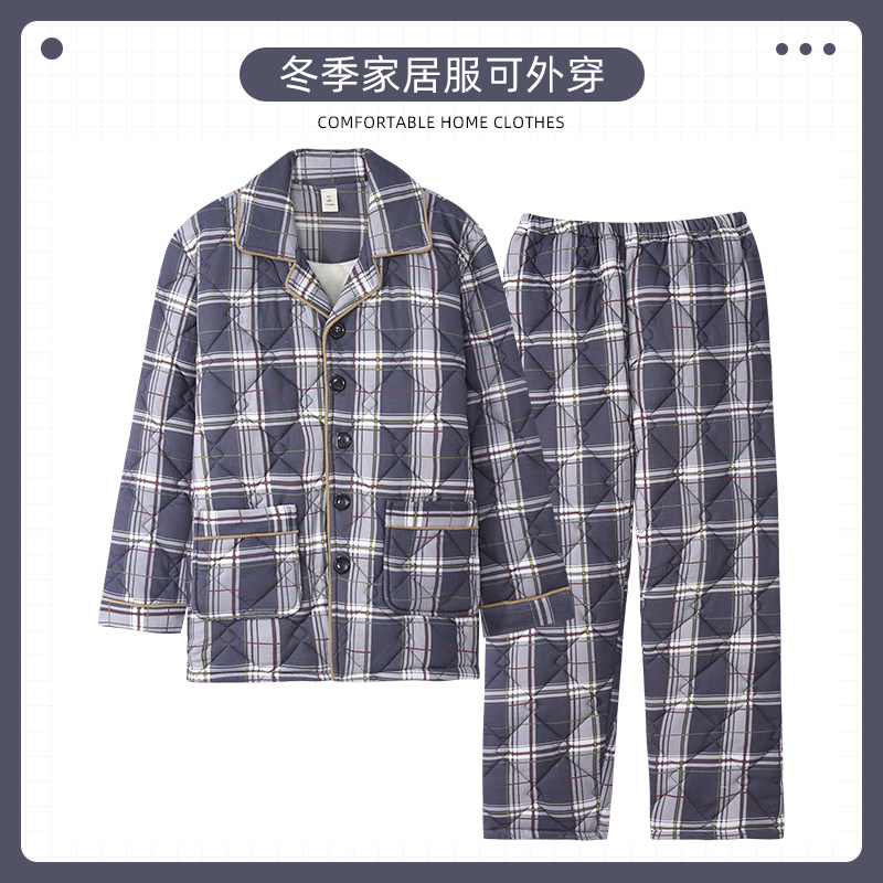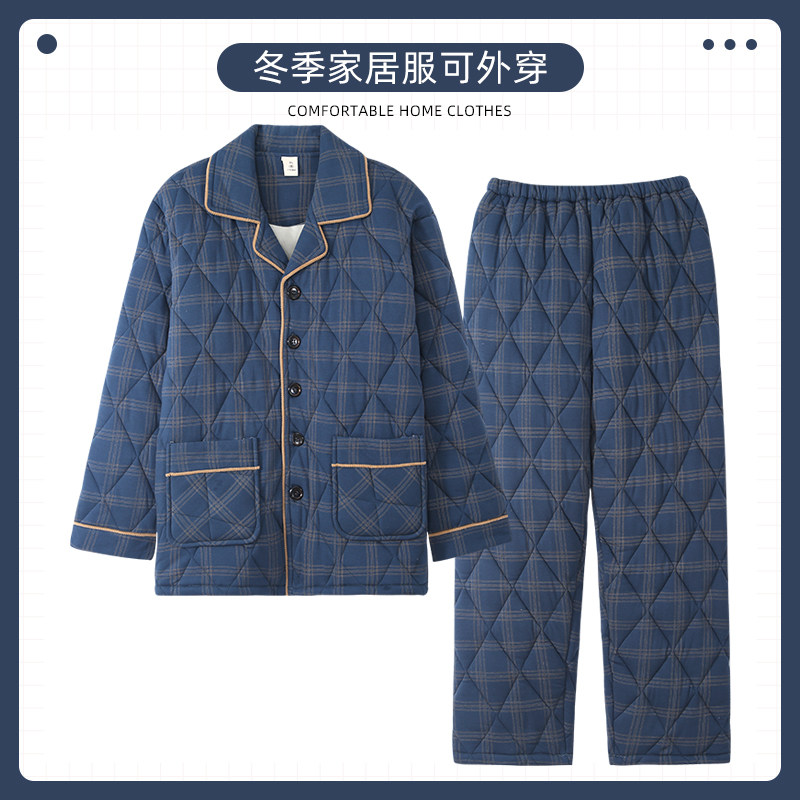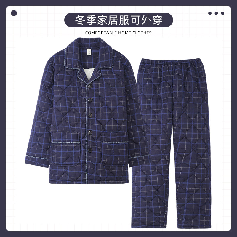 三层夹棉睡衣男士冬季纯棉加厚保暖棉袄大码中老年爸爸家居服套装