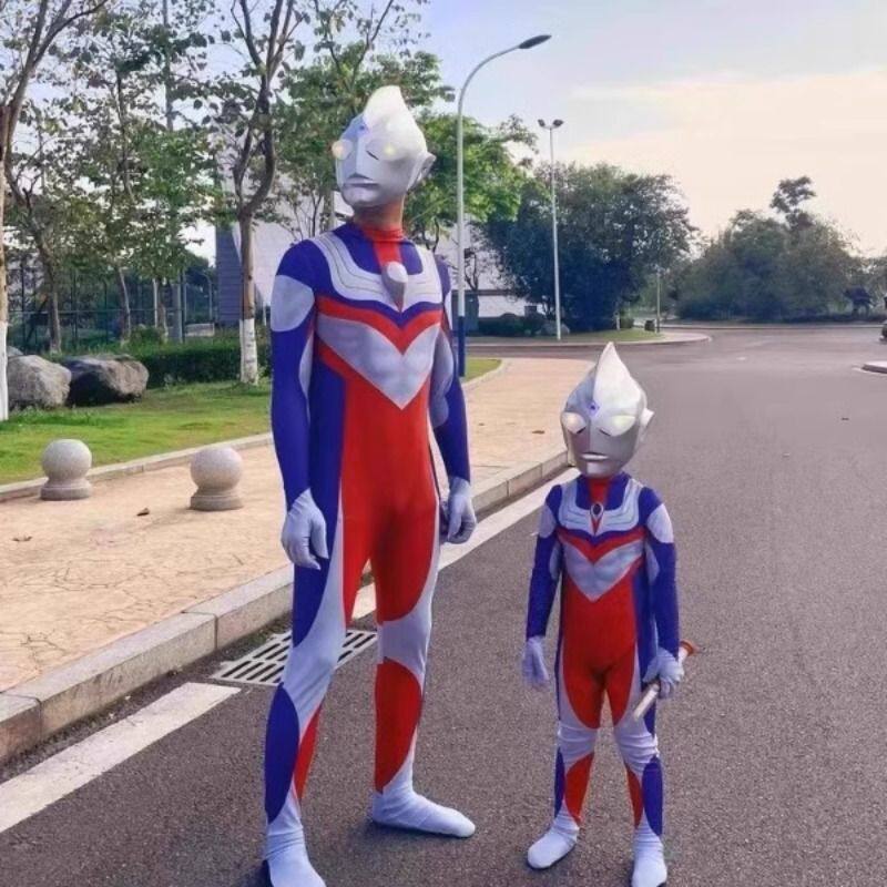 儿童演出服赛罗奥特超人曼男童衣服迪迦大人版连体衣cos发光披风