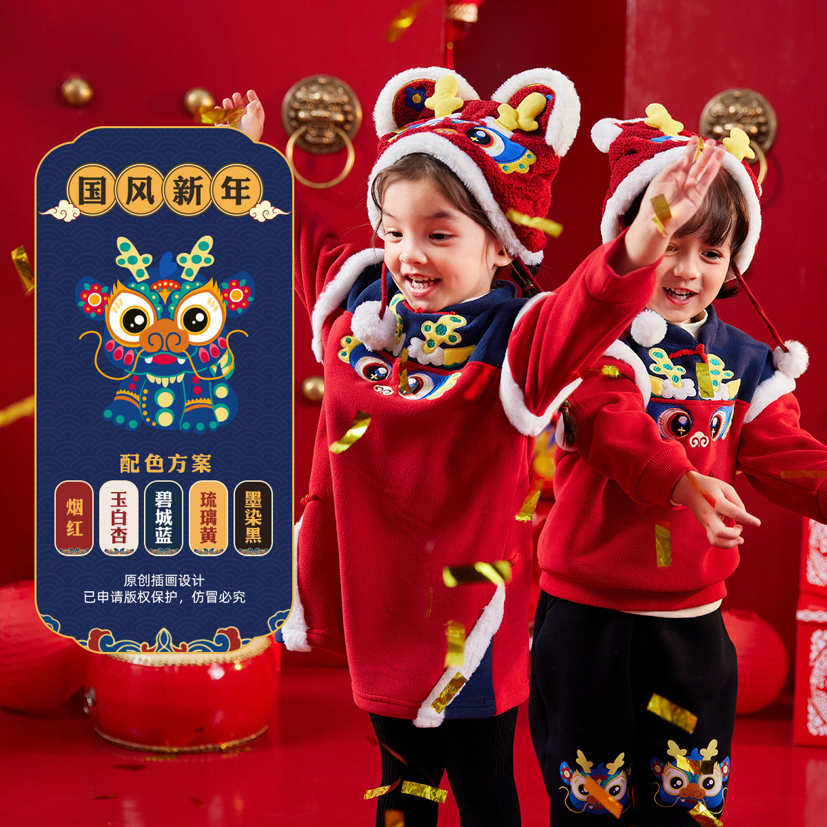 嘟嘟家宝宝周岁礼服儿童唐装红色喜庆卫衣男童装女童加绒拜年服冬