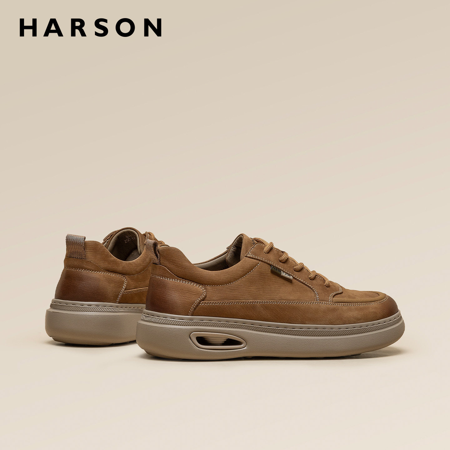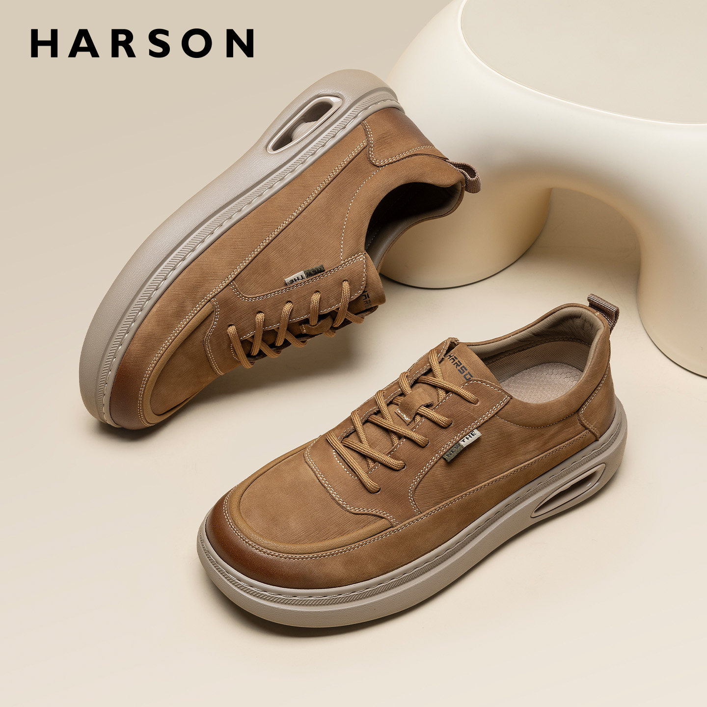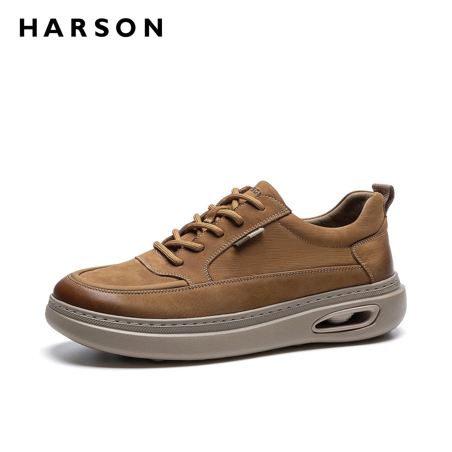 哈森男鞋春季新款复古低帮工装鞋男士皮鞋厚底真皮软底时尚休闲鞋