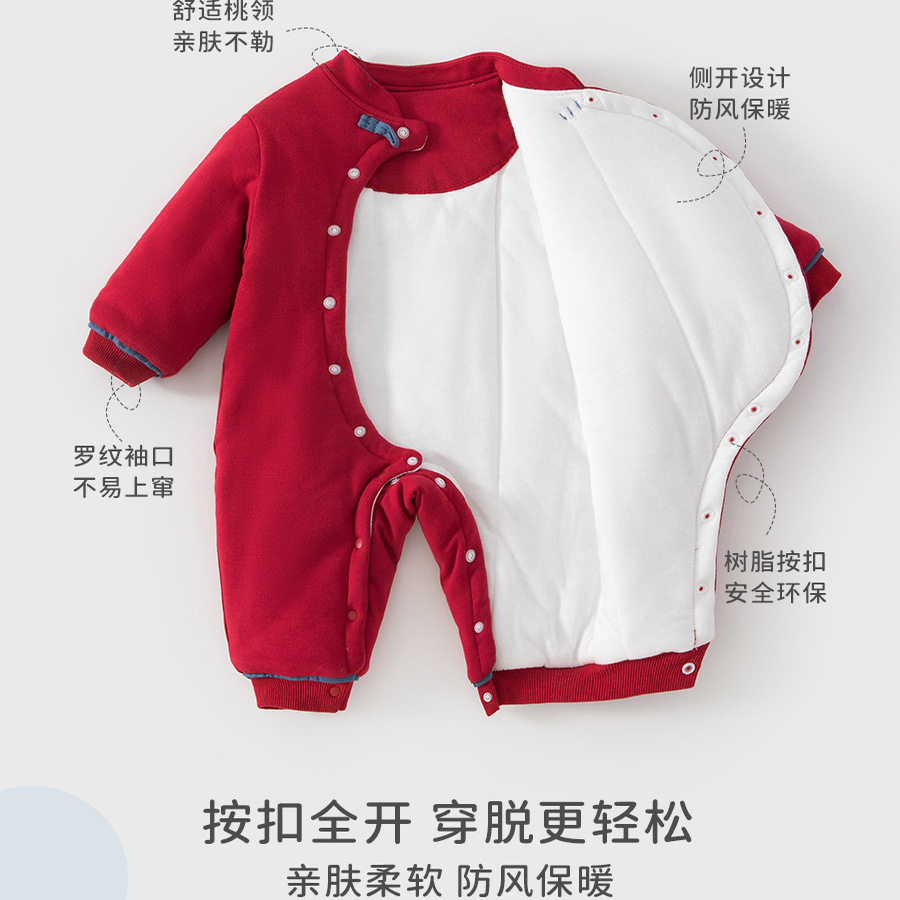 婧麒新生婴儿连体衣冬季满月宝宝衣服保暖夹棉哈衣婴幼儿拜年爬服