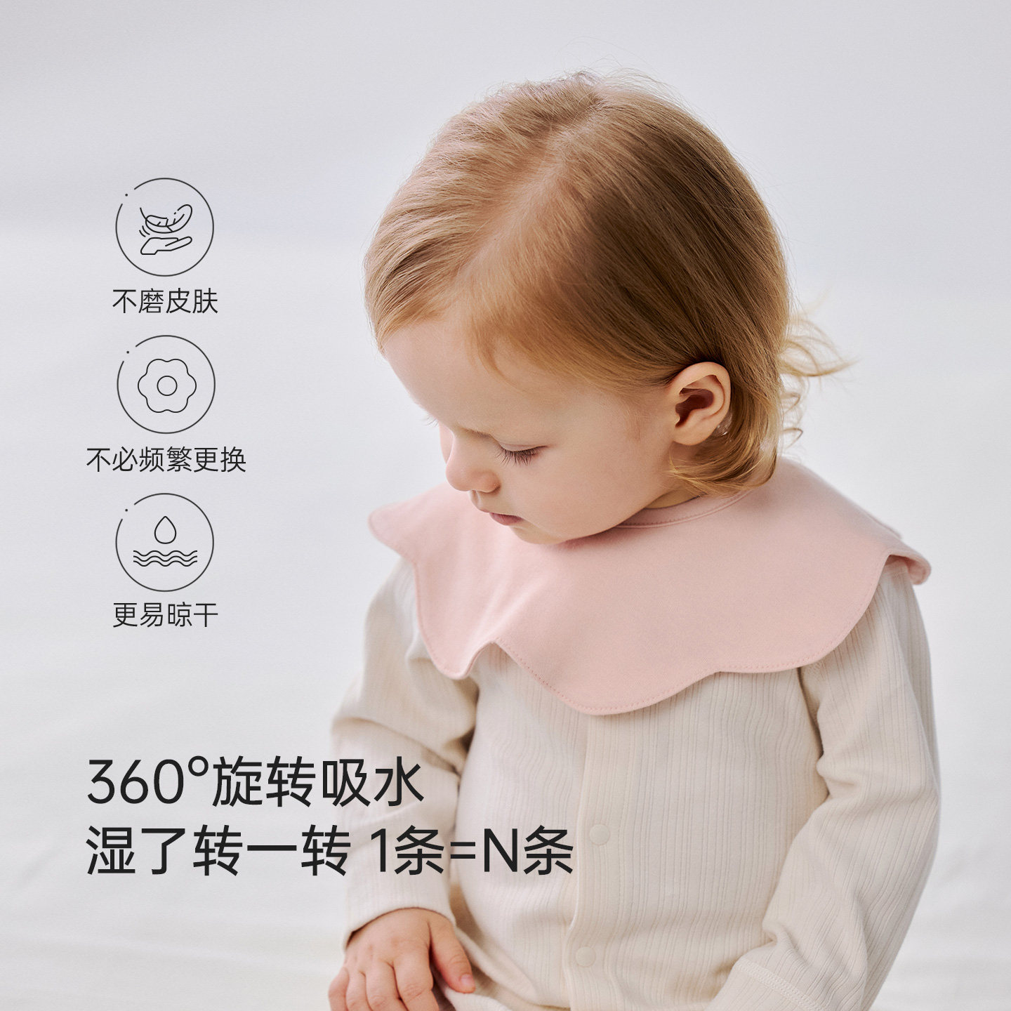 开丽新生儿花瓣围嘴纯棉透气可旋转宝宝吃饭吃奶口水巾围兜 A 类