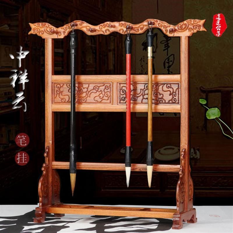 红酸枝木实木雕刻祥云毛笔架笔搁古典大毛笔挂文房X四宝书法用品