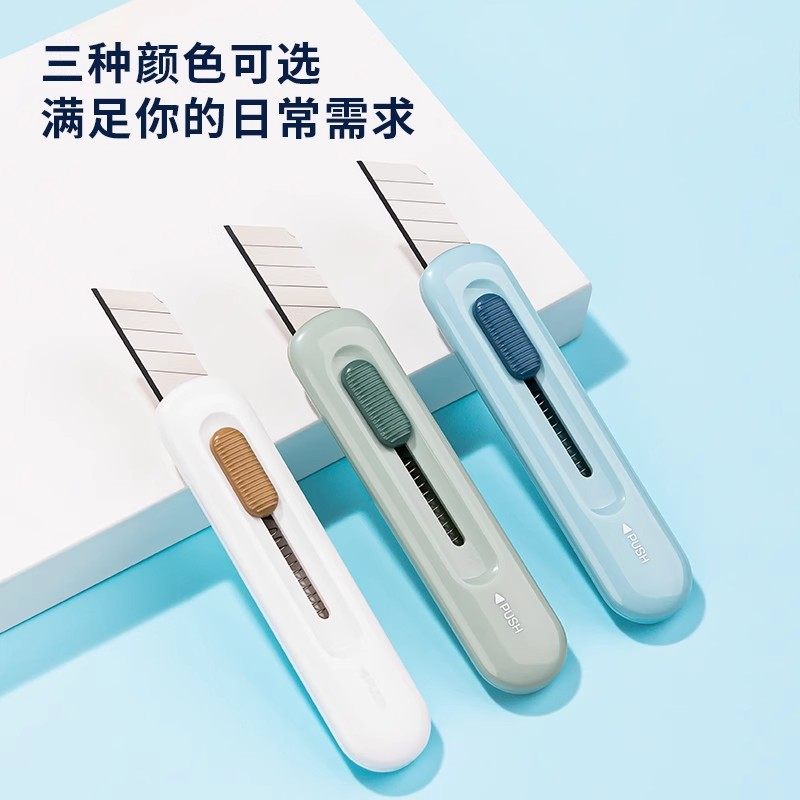 得力2079小型美工刀迷你随身拆快递包装自动回弹多功能文具用品刀子开箱专用小刀高颜值可爱学生手工裁纸刀