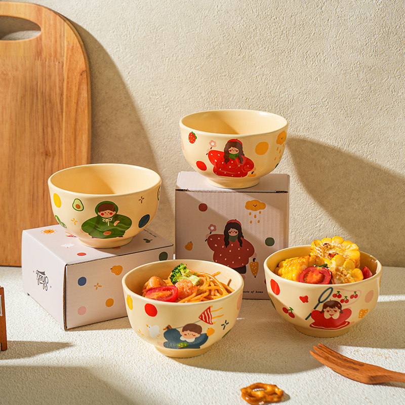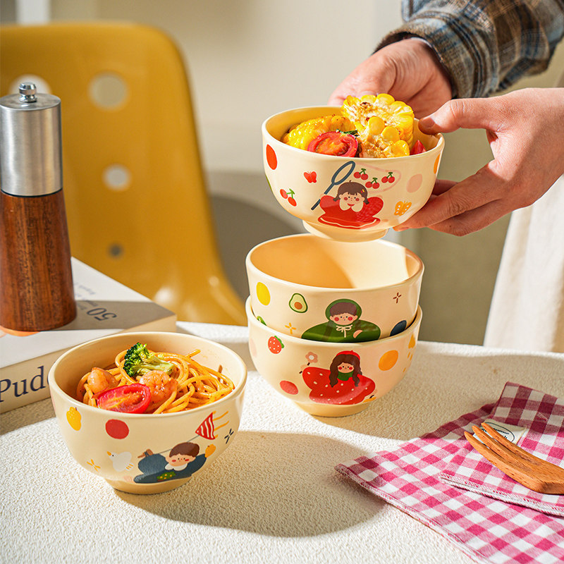 陶瓷餐具日式创意祝福水果碗碗家用吃饭专用小碗精致可爱饭碗