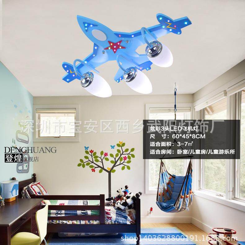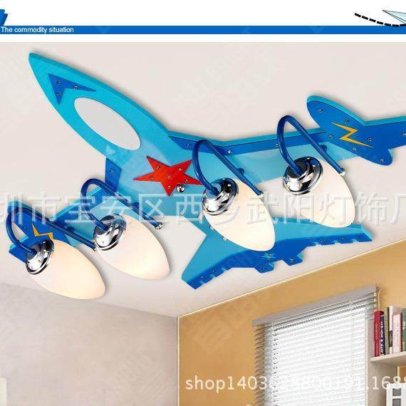 吸顶灯卡通木质飞机卧室灯LED分段遥控客厅灯儿童房幼儿园灯饰